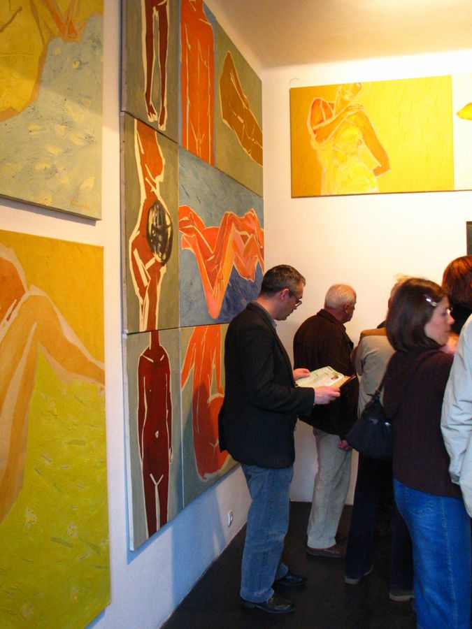 In the exhibited works, I focused upon the synthesis of visual perception, striving for the surface of the canvas to convey - clearly and strictly - the essential beauty of the naked body. To achieve the desired effect, I developed a distinctive technique. I was seeking the clear definition of lines of bodily expression, and the simplification of colour. Defining emotion through configuration of accents and impact of colours was equally important.