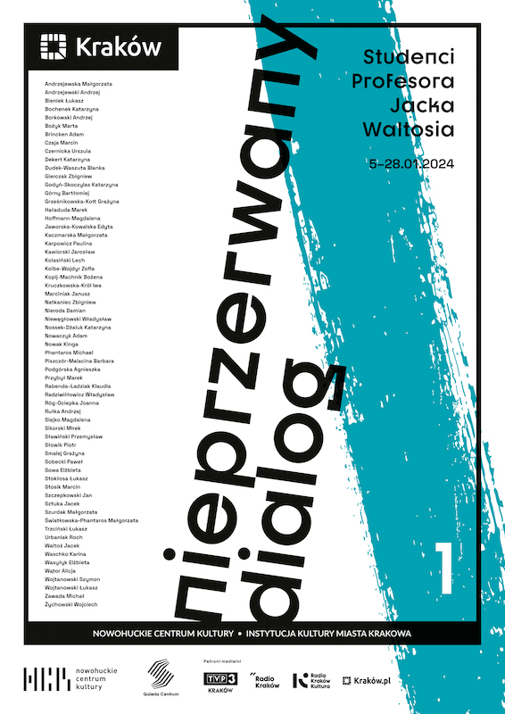 This is the first in a series of seven nationwide exhibitions dedicated to students of Professor Jacek Waltoś's Painting Studio, which the Professor conducted over 40 years of teaching work at the Academy of Fine Arts in Kraków and at the Academy of Fine Arts in Poznań, today The Magdalena Abakanowicz University of Arts. This event is an extraordinary meeting of 63 artists, graduates of the studio, most of whom will meet each other for the first time during a joint show of their work. This is a meeting of painters, sculptors, graphic designers, set designers, artists dealing with artistic textiles and interior and architectural design. This is a meeting of personalities who had the opportunity and choice to study in the Studio of Professor Jacek Waltoś. These are mature artists who, together with the Professor, will meet for the first time at a joint event, which for me, the organizer of this "creative chaos", is a sign of an academic tradition that, despite constant changes, continues, is important and, above all, guards these changes, because without it they would have no reason to exist.